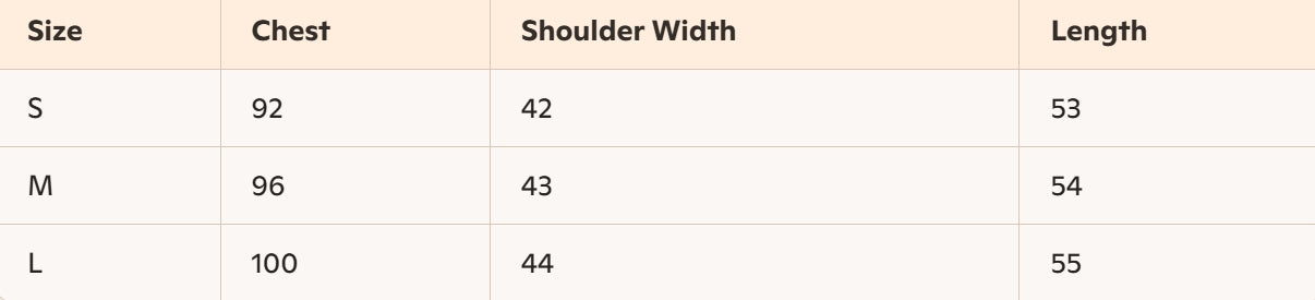 - Size : S, M, L