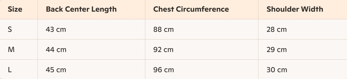 - Size : S, M, L
