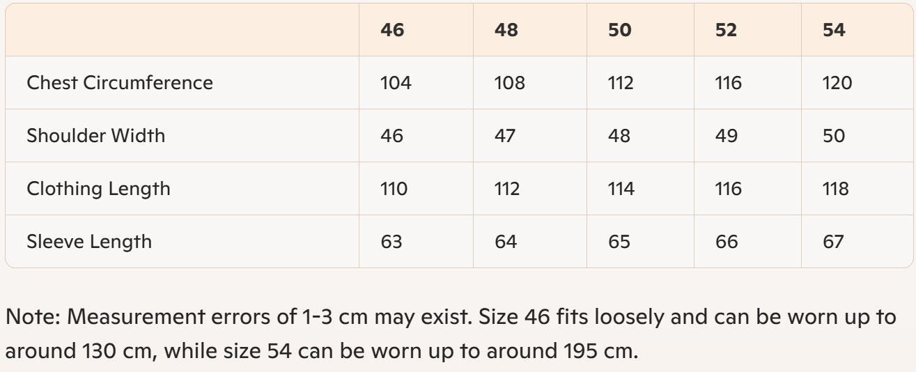 • Size : 46, 48, 50, 52, 54