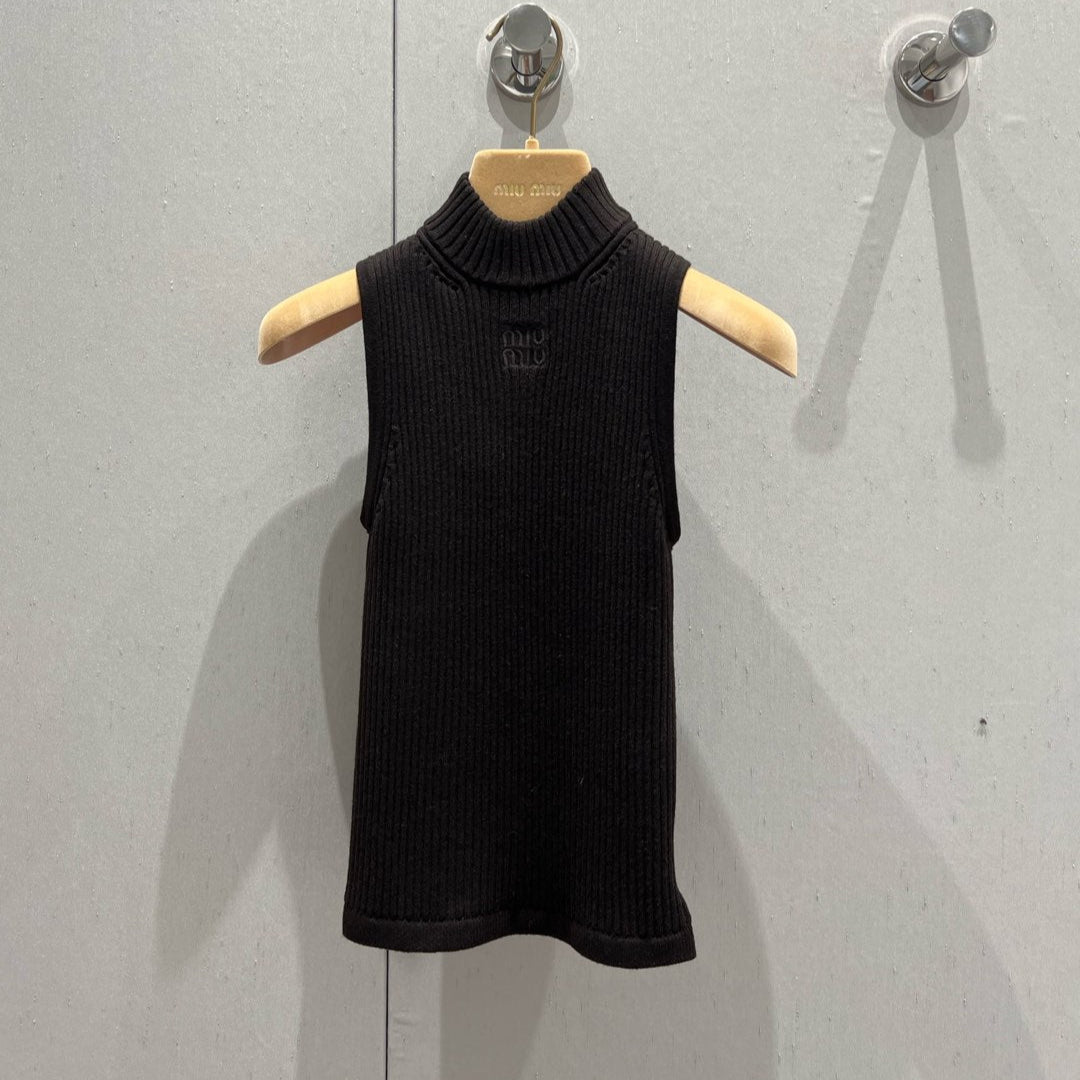 Miu Miu 25 Collar Vest Sweater Top Brown Wool