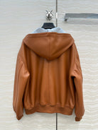 Miu Miu 25 Hooded Leather Jacket Orange Brown
