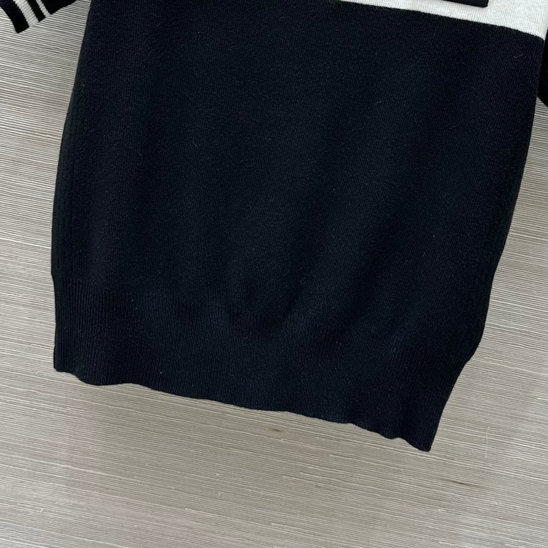 Miu Miu 25 Polo Collar Short-sleeved Top Black White Tencel