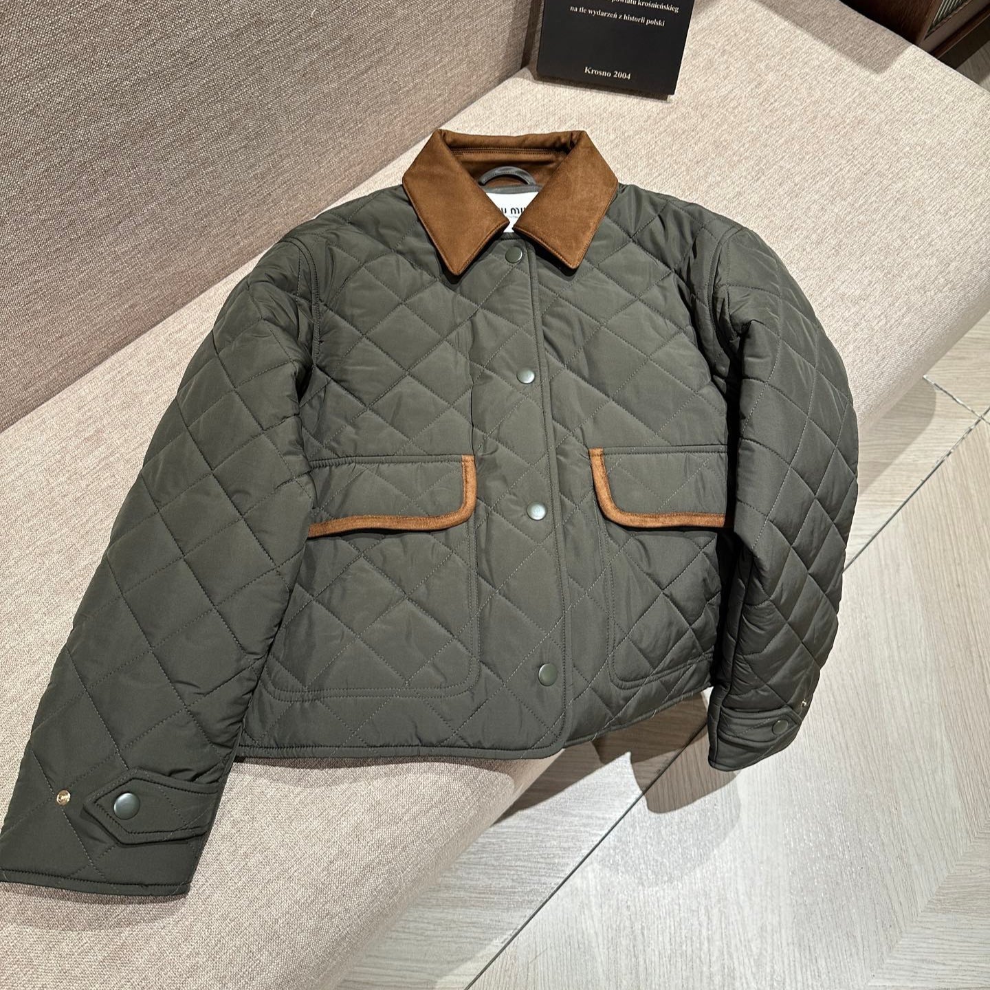 Miu Miu 25 Quilted Jacket Seaweed Green Polyester 302918