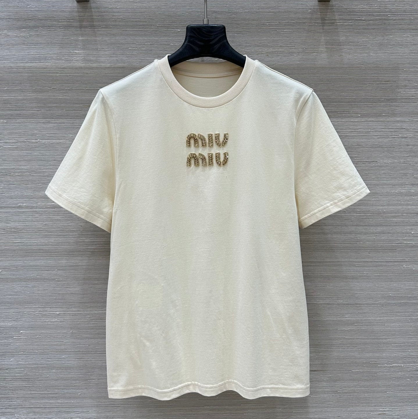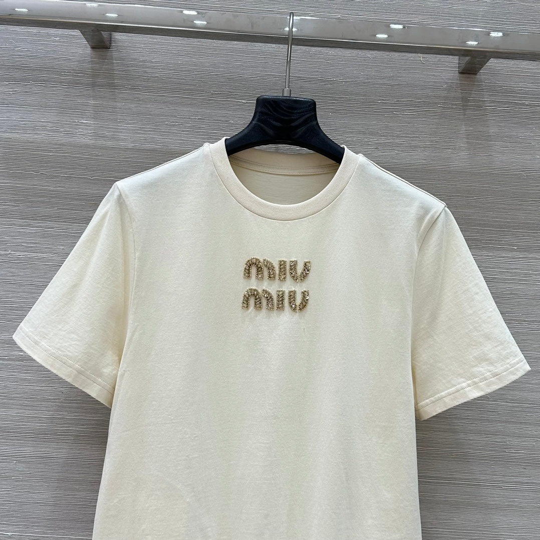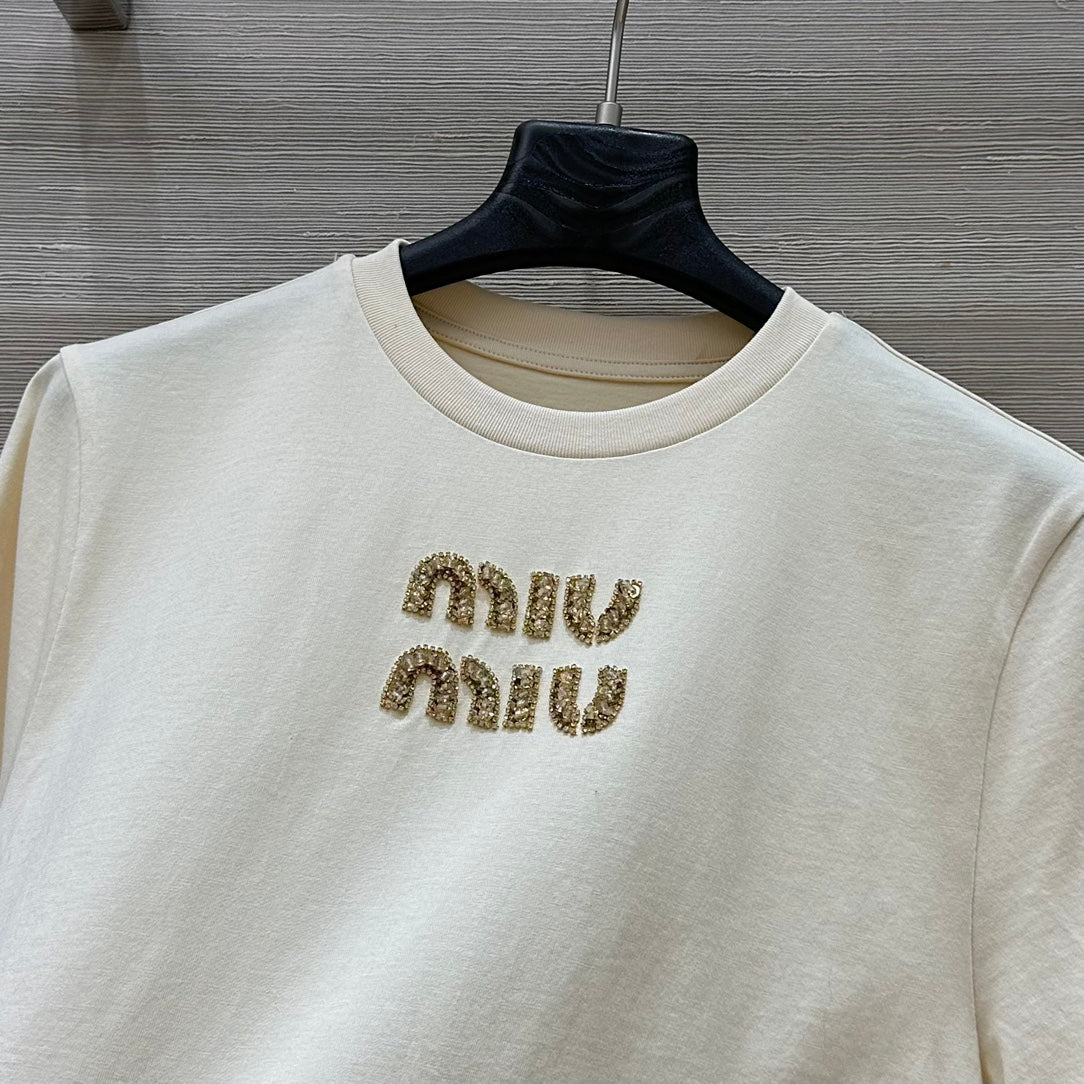 Miu Miu 25 Ribbed Cotton T-shirt Ivory Cotton