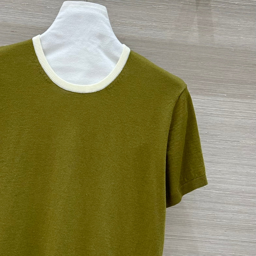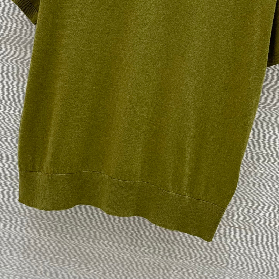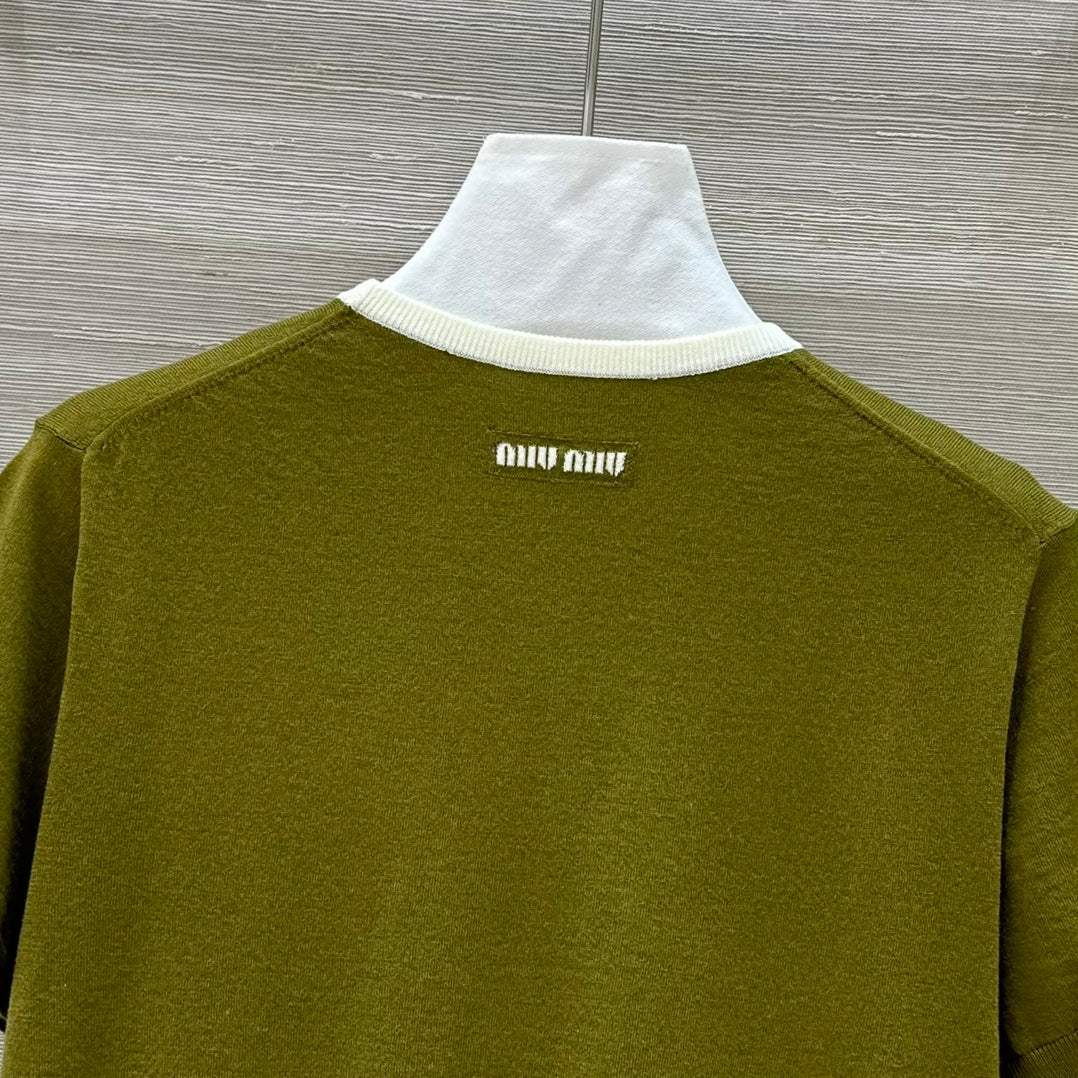 Miu Miu 25 Short-sleeve Top Olive Green Wool