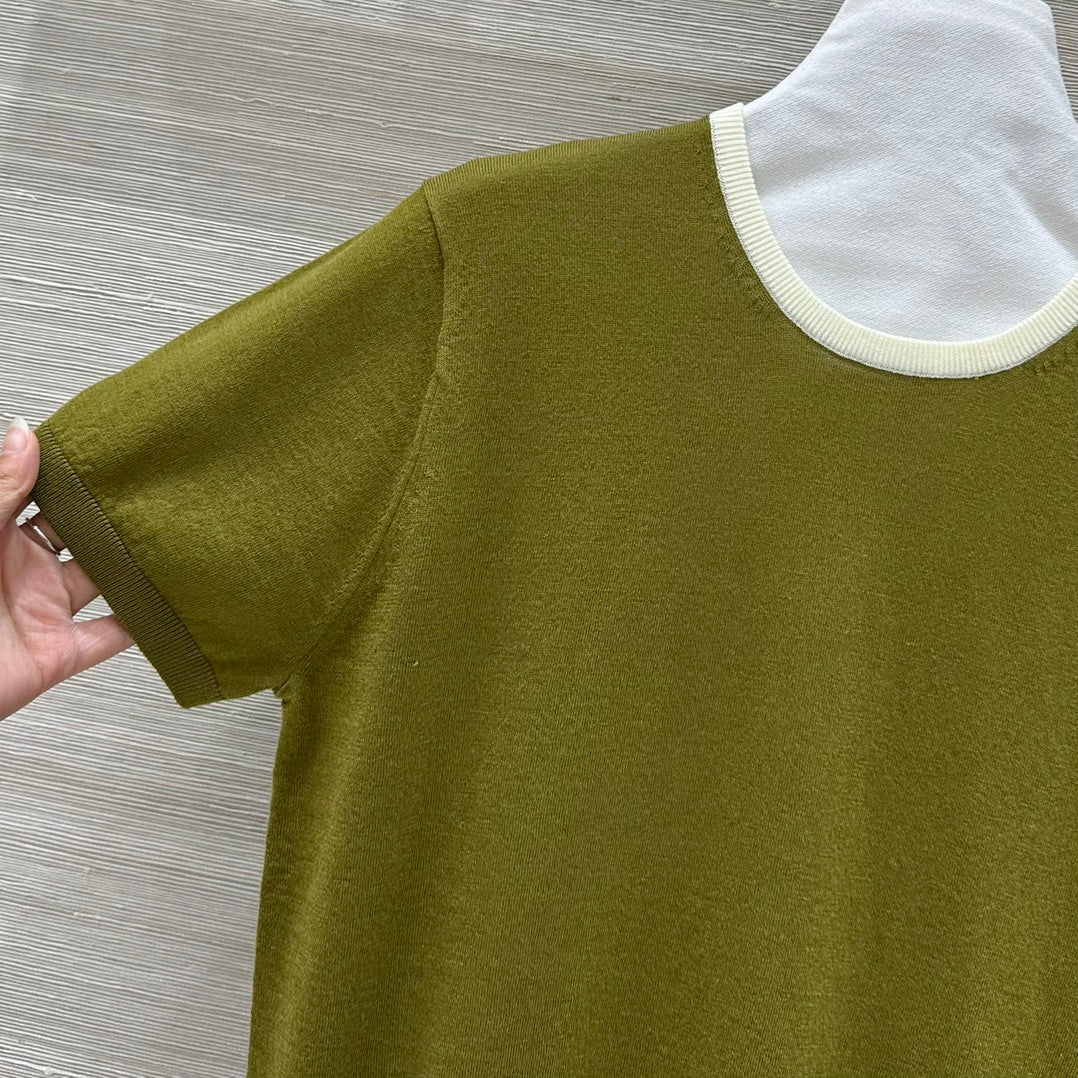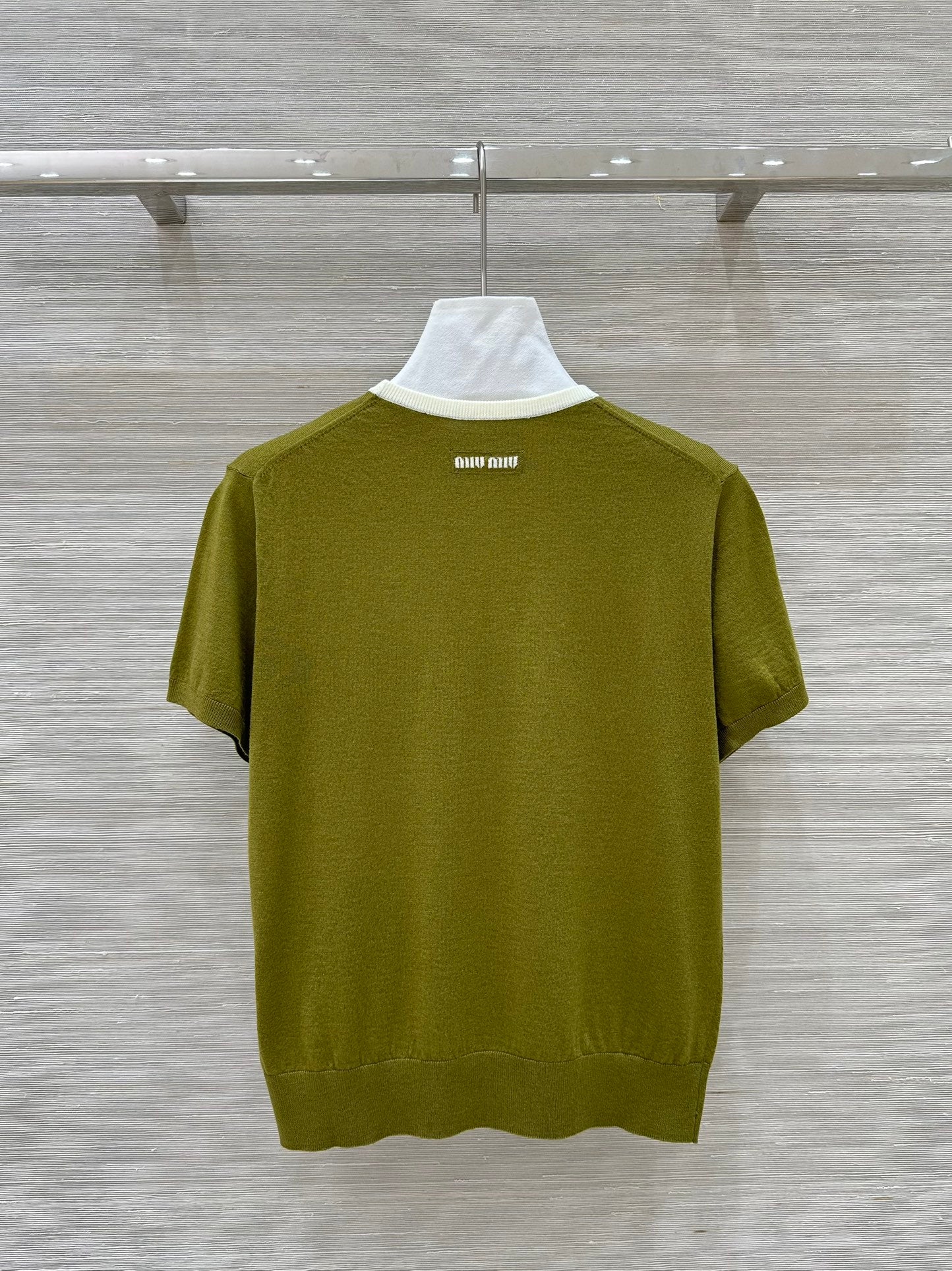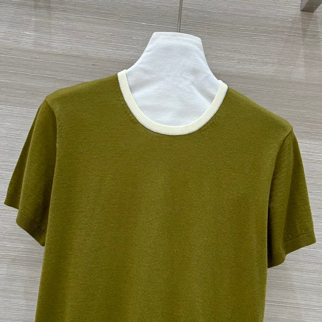Miu Miu 25 Short-sleeve Top Olive Green Wool