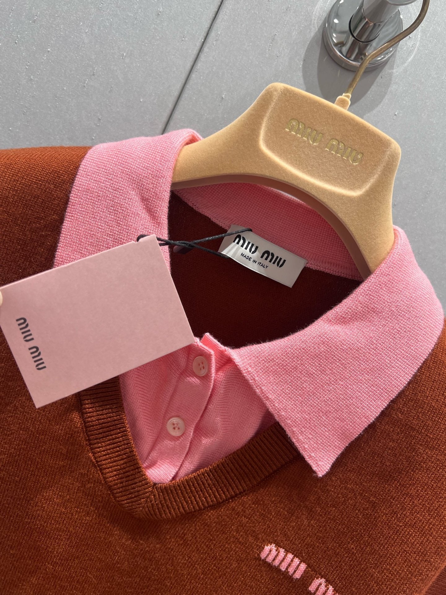 Miu Miu 25 Two-piece Vest Polo short-sleeved Knitted Top Pink Brown Wool 210563