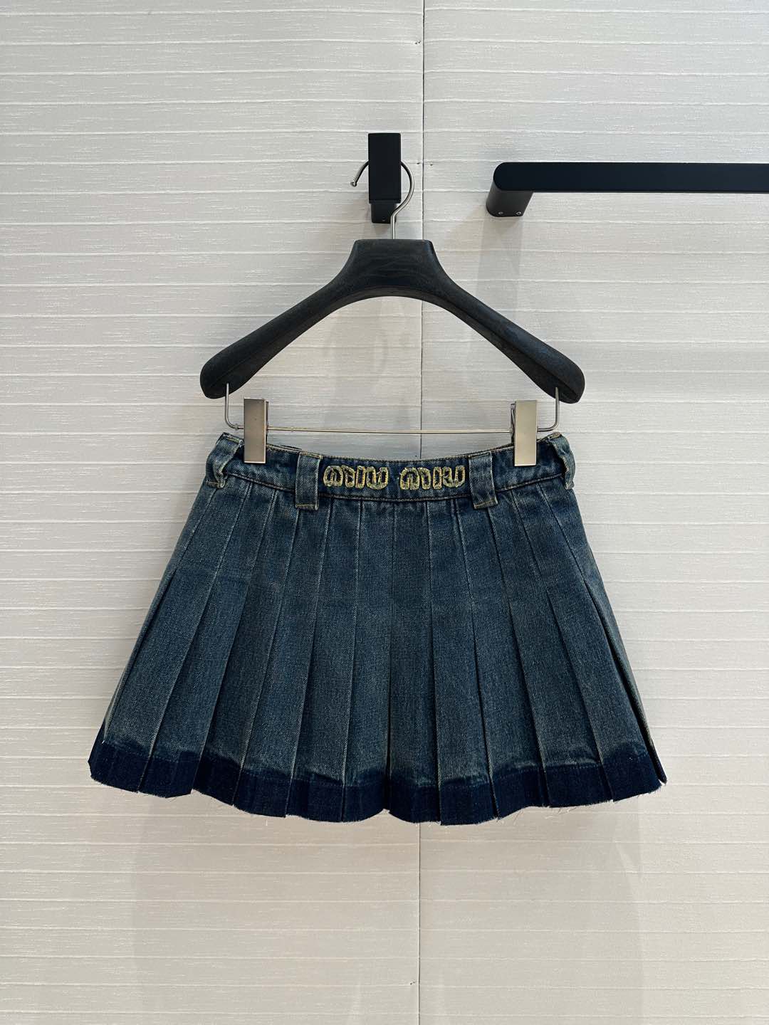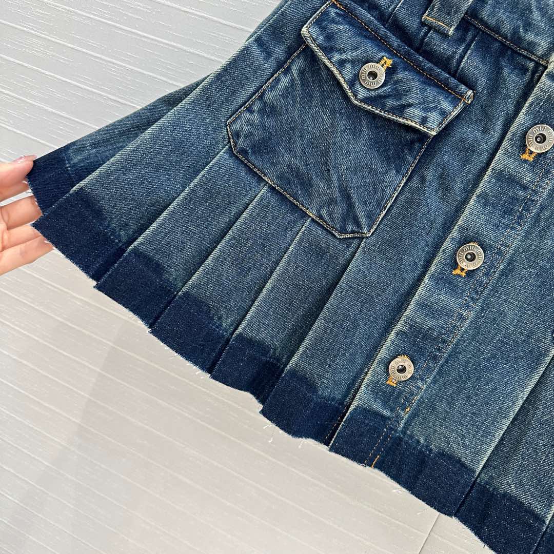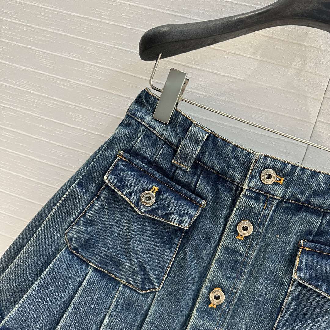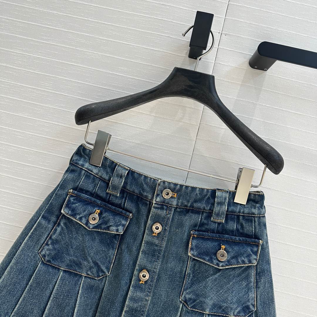 Miu Miu Denim Pleated Short Skirt Blue Cotton