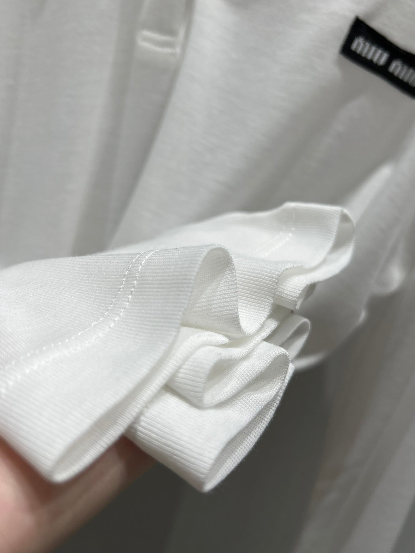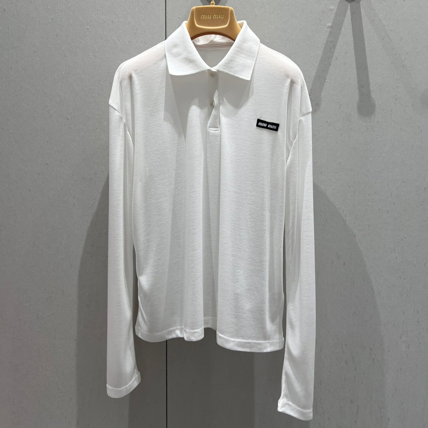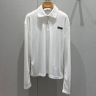Miu Miu Ribbed Knitted Long-sleeved Polo Shirt White Cotton 208569