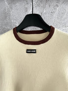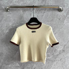 Miu Miu Short-sleeved Knitted Sweater Brown Cream Cotton