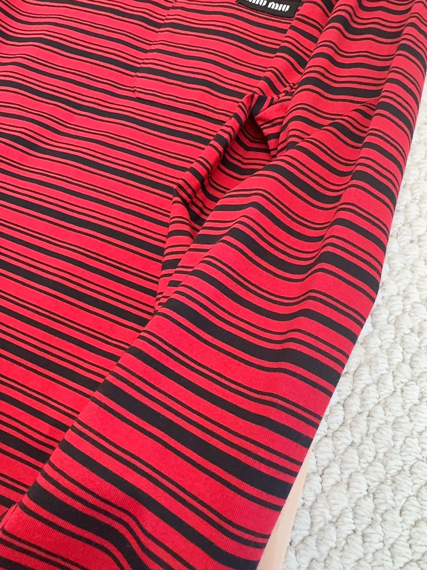 Miumiu 2025 Striped Long-sleeved T-shirt Red Cotton