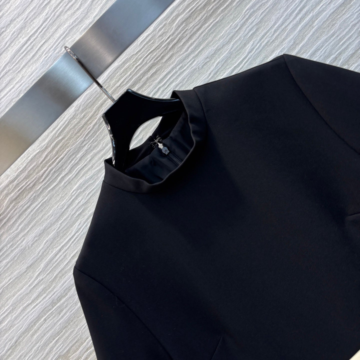 Prada 25 Patchwork Short-sleeved Dress Black mix Beige Cotton