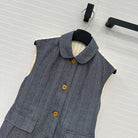 Prada 25 Striped Vest Jacket Grey Wool Cotton Polyester