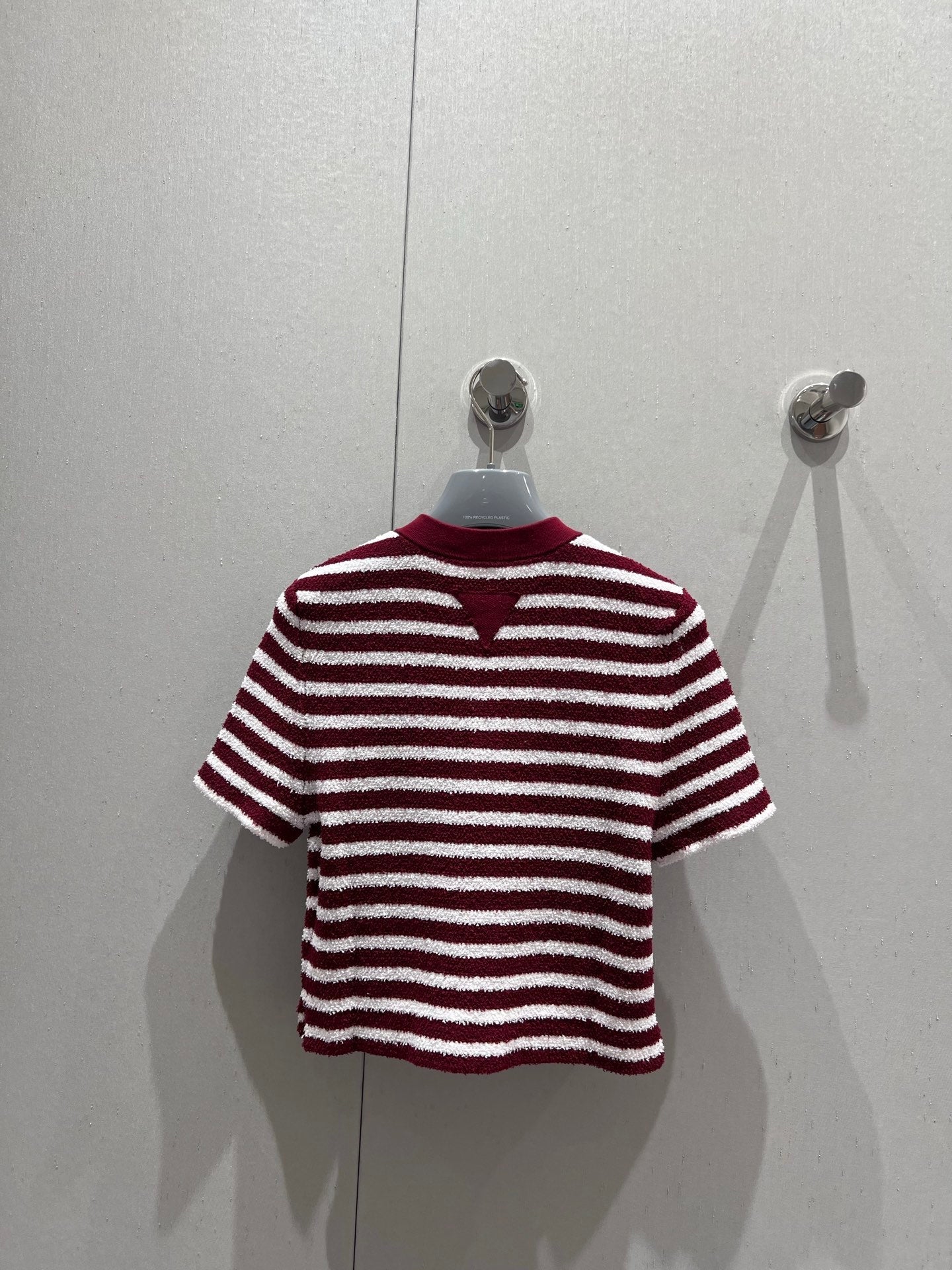 Prada 25 Yarn Striped Round Neck Knit Top White mix Red Cotton Poliamide 217770