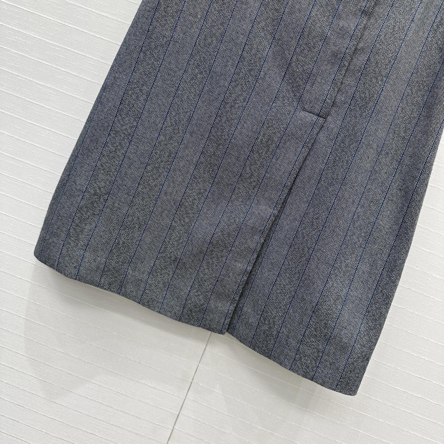 Prada Striped Suit Mid-length Skirt Grey Wool Cotton Polyester