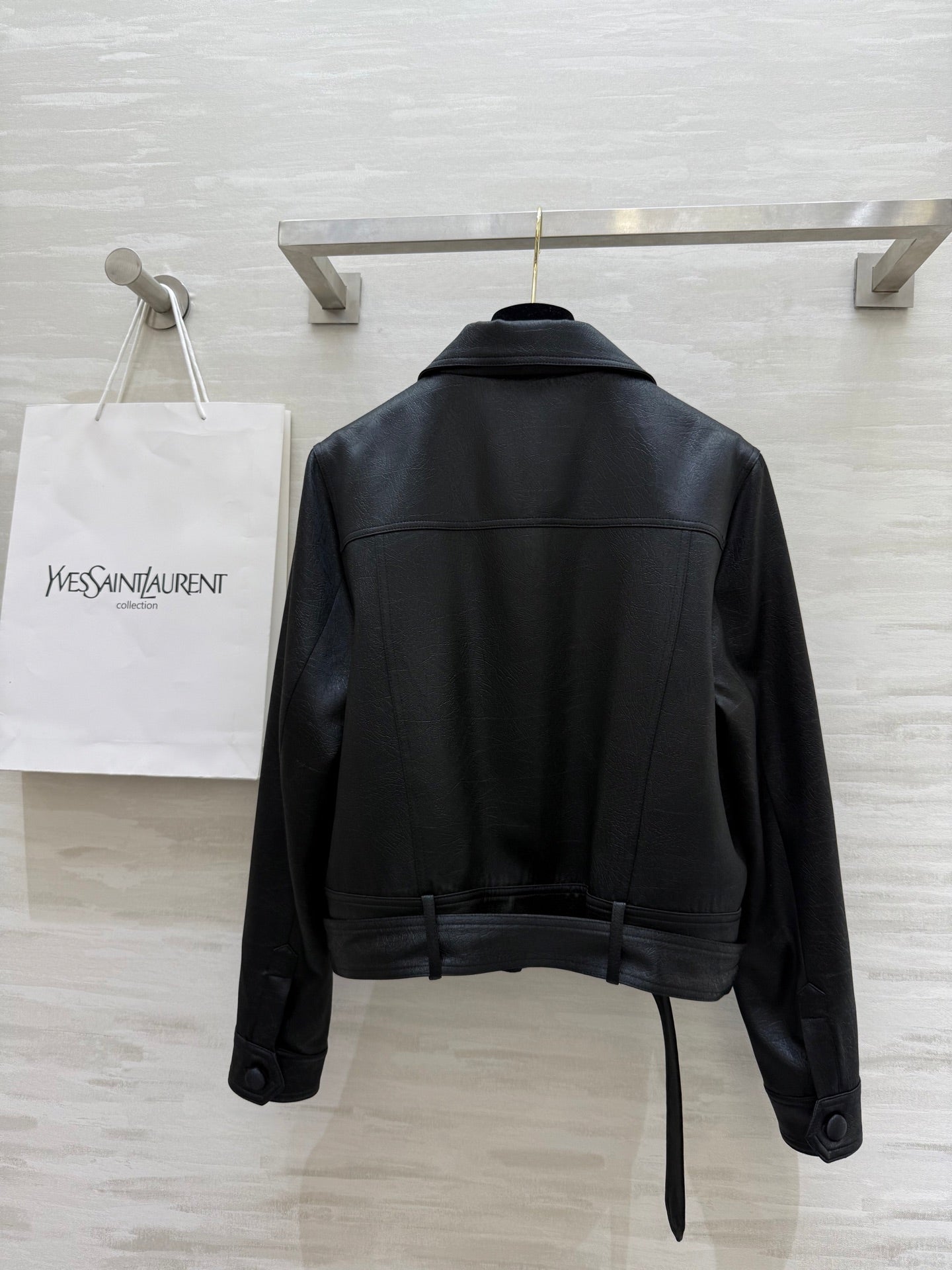 YSL 25 Cracked Pleated Jacket Black Acetate