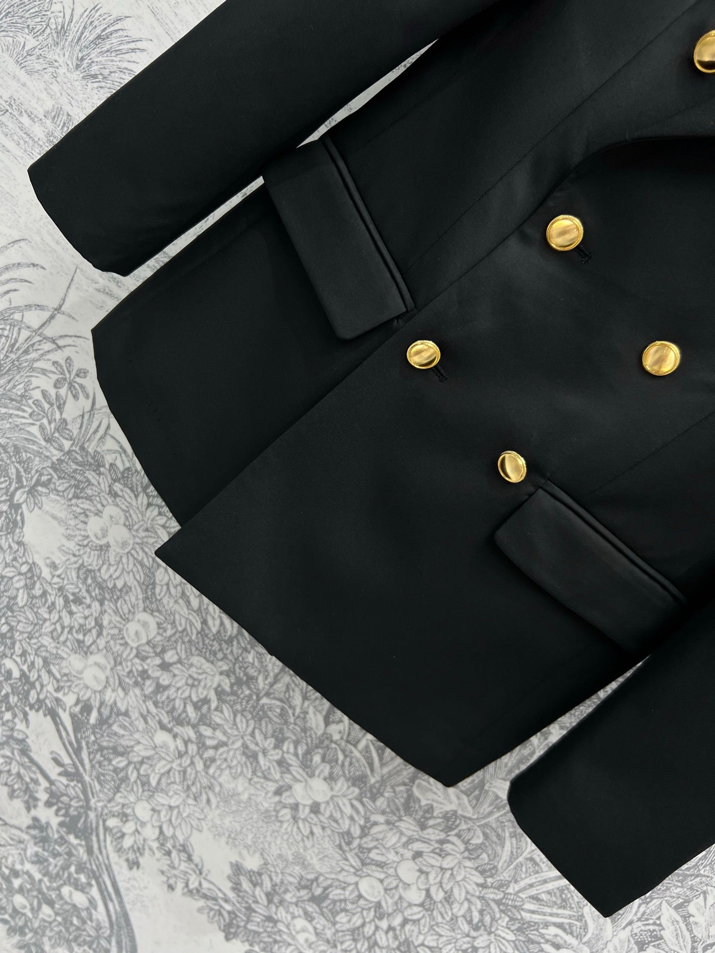 YSL 25 Double-breasted Suit Jacket Black Cotton Polyester