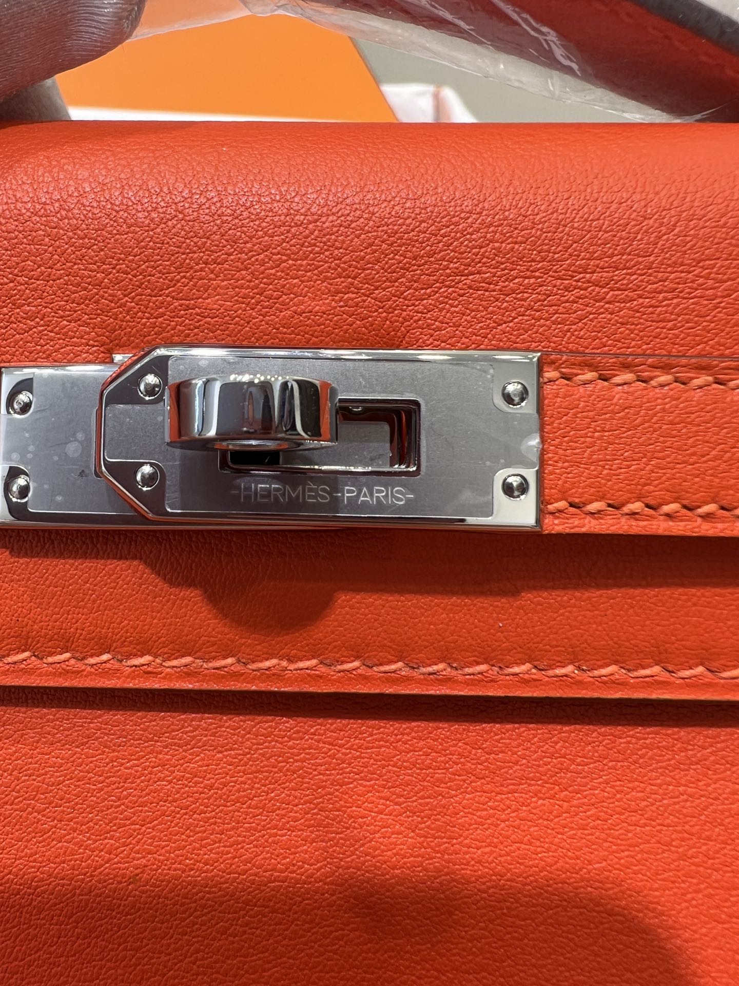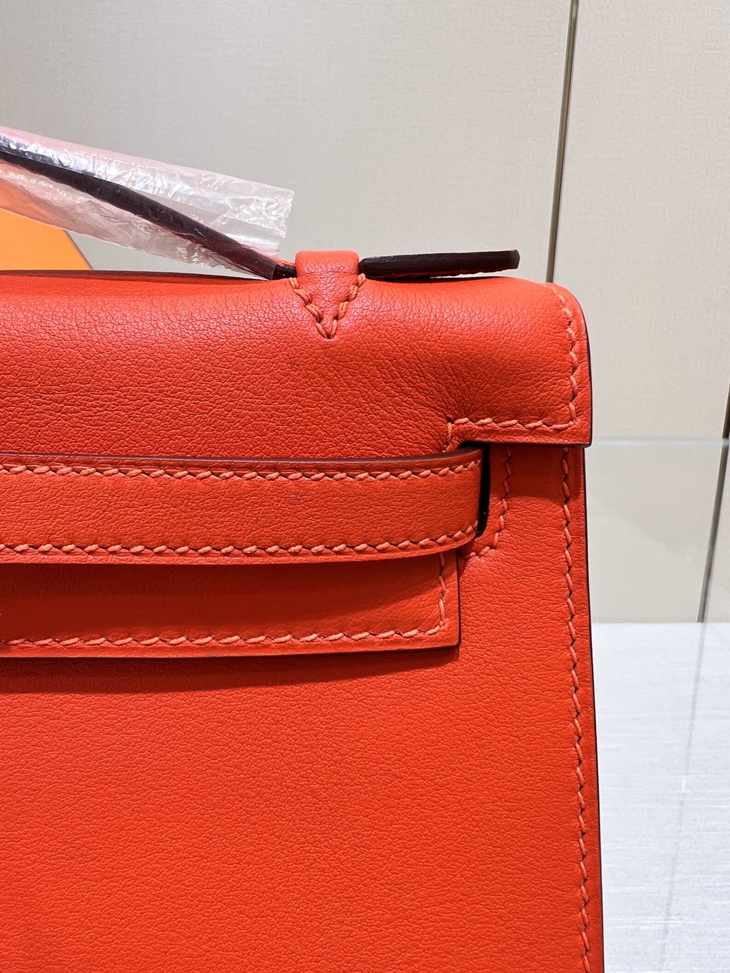 HM KELLY POCHETTE 22CM RED SWIFT SILVER HARDWARE