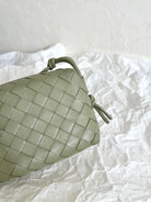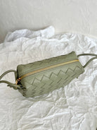 • Mini intrecciato leather crossbody bag with knotted metallic embellishment