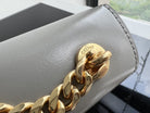 - Color: Grey leather, gold hardware