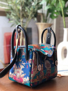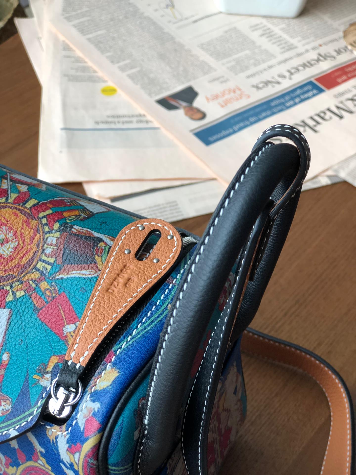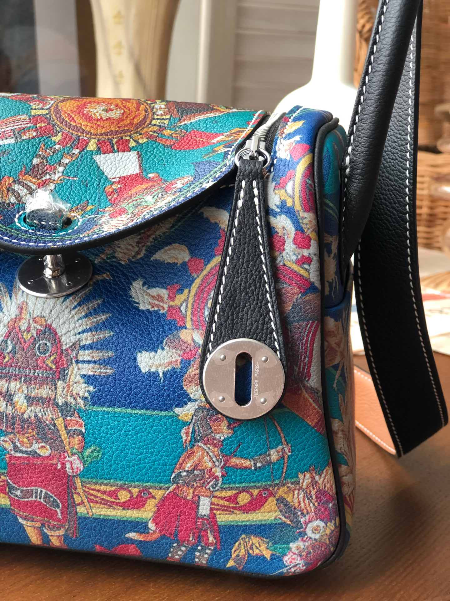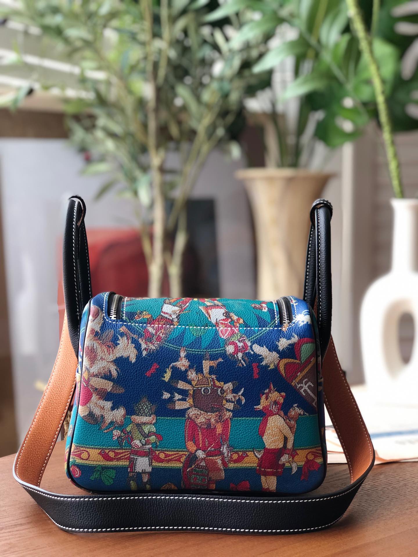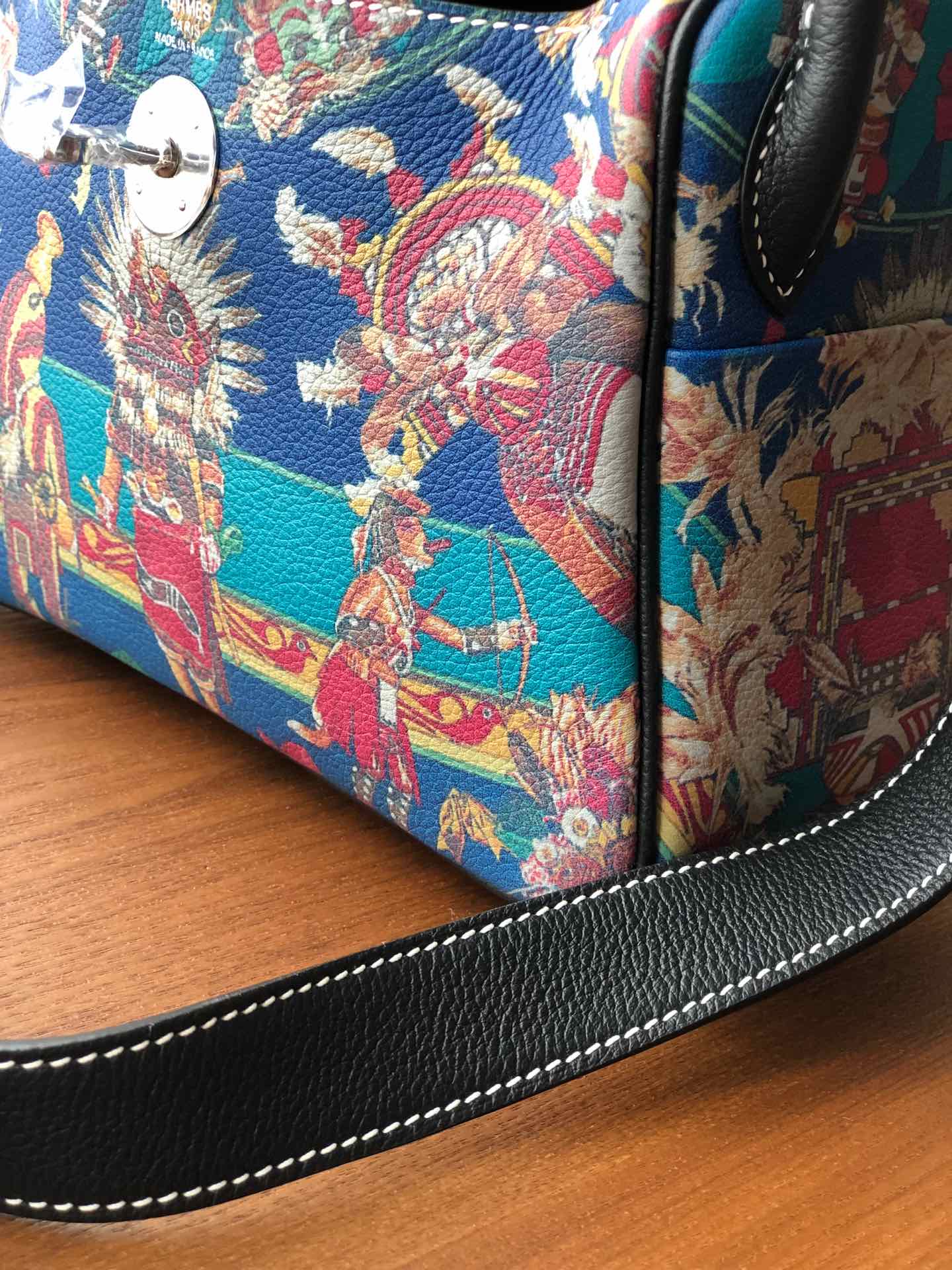 HM LINDY MINI 19 BLUE TAURILLON CLEMENCE LEATHER WITH PATTERN