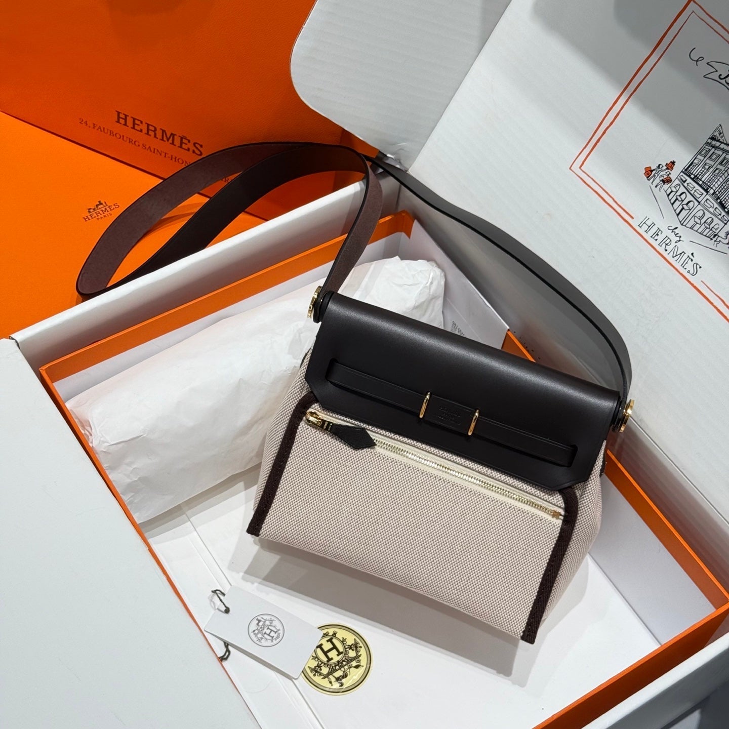 HM Mini Herbag Gold Buckle 20 Beige Canvas and Hunter Cowhide 243236