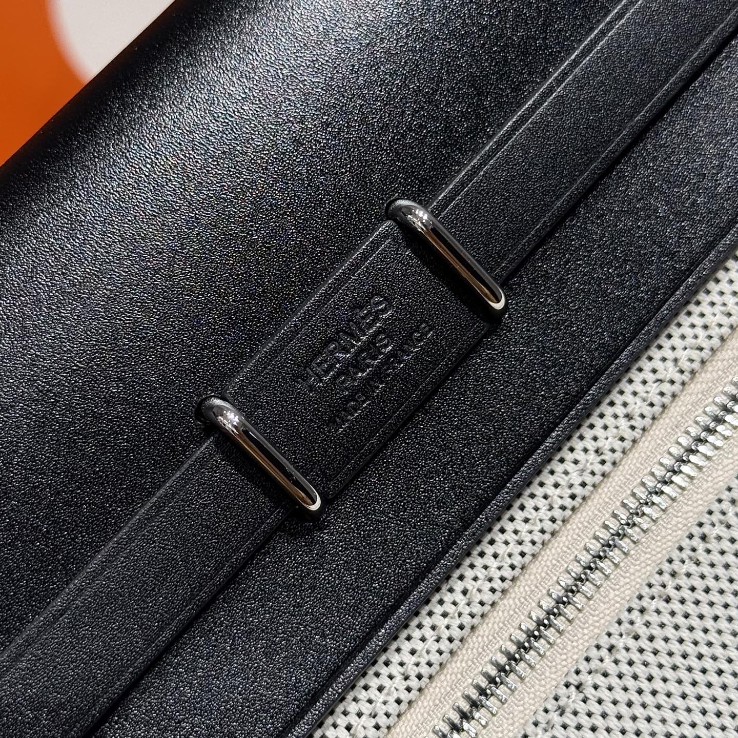 HM Mini Herbag Silver Buckle 20 Ecru White Canvas and Hunter Cowhide 243231