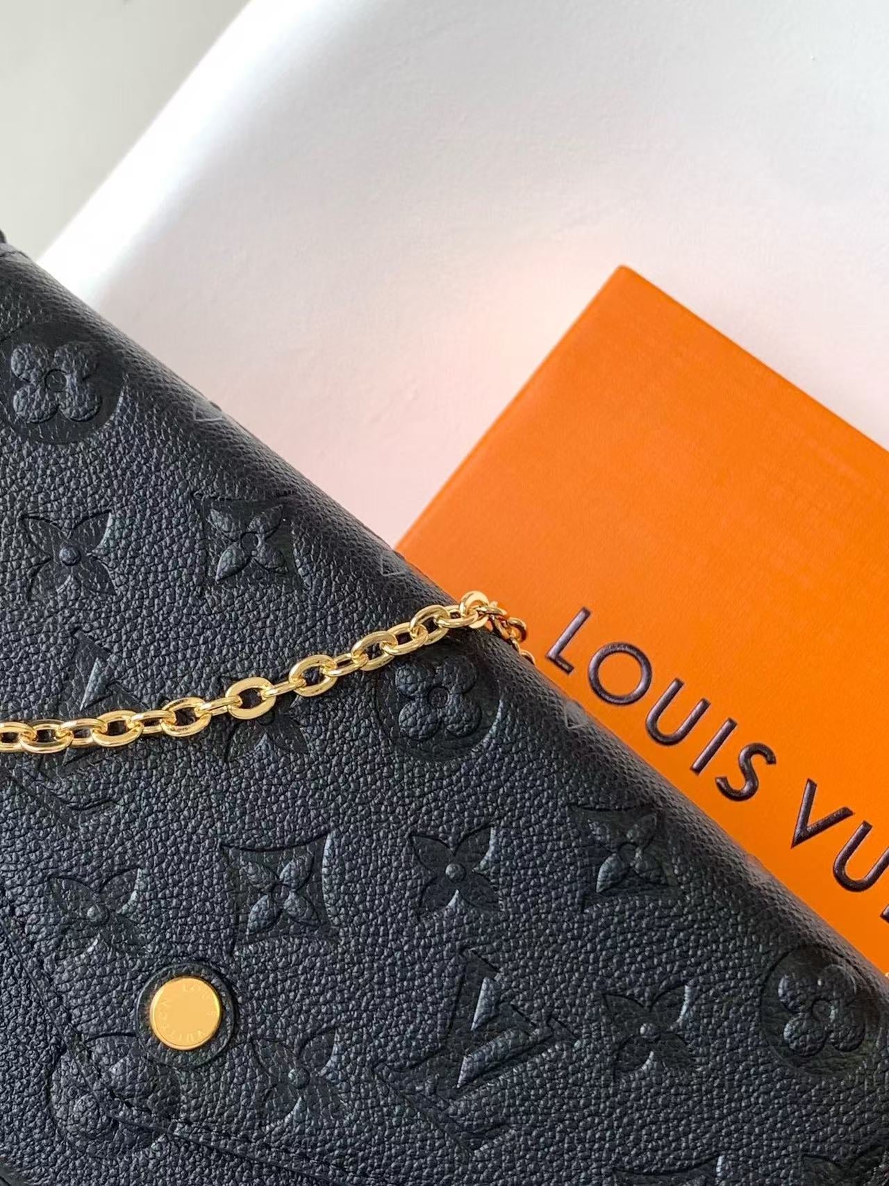 LV Pochette Félicie Chain Bag Black Grain Cowhide