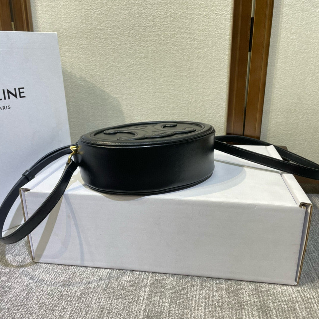 SMOOTH CALFSKIN 20 OVAL CINNAMON BLACK BAG