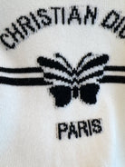 CD 25 Butterfly Knitted Short Sleeves Top White Black Cotton
