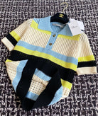 CD 25 Embroidered Short Sleeves Beige Blue Wool