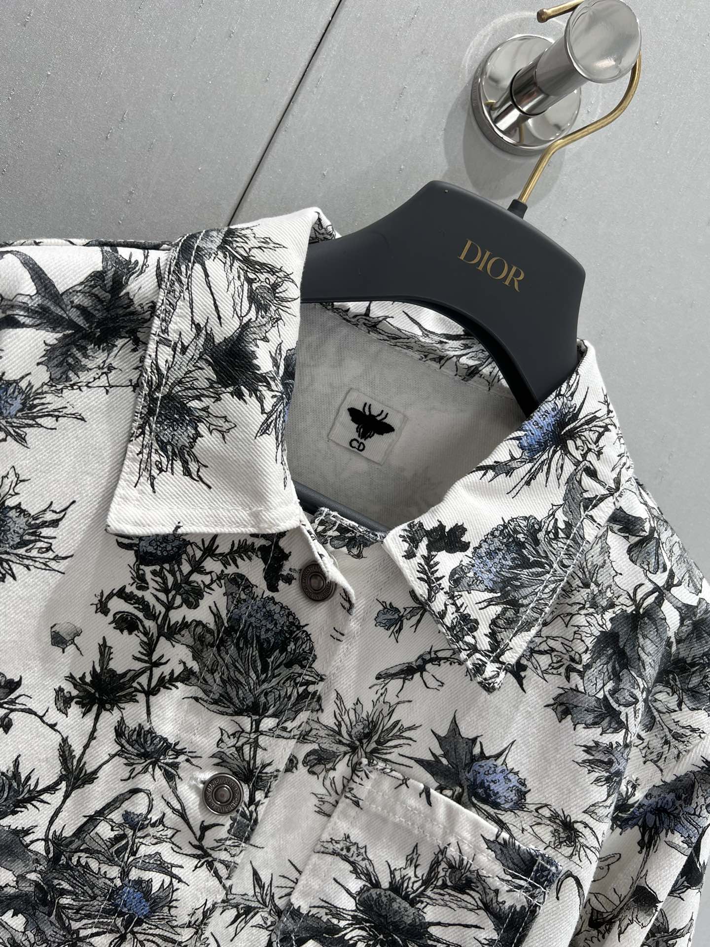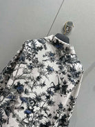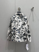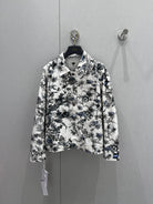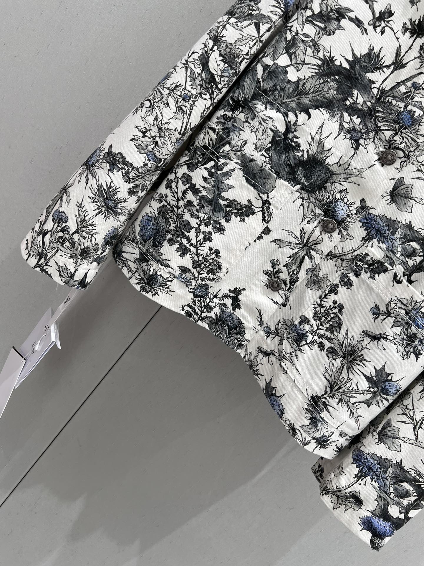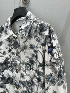 CD 25 Plant Flower Print Denim Jacket White Gray Cotton 205152