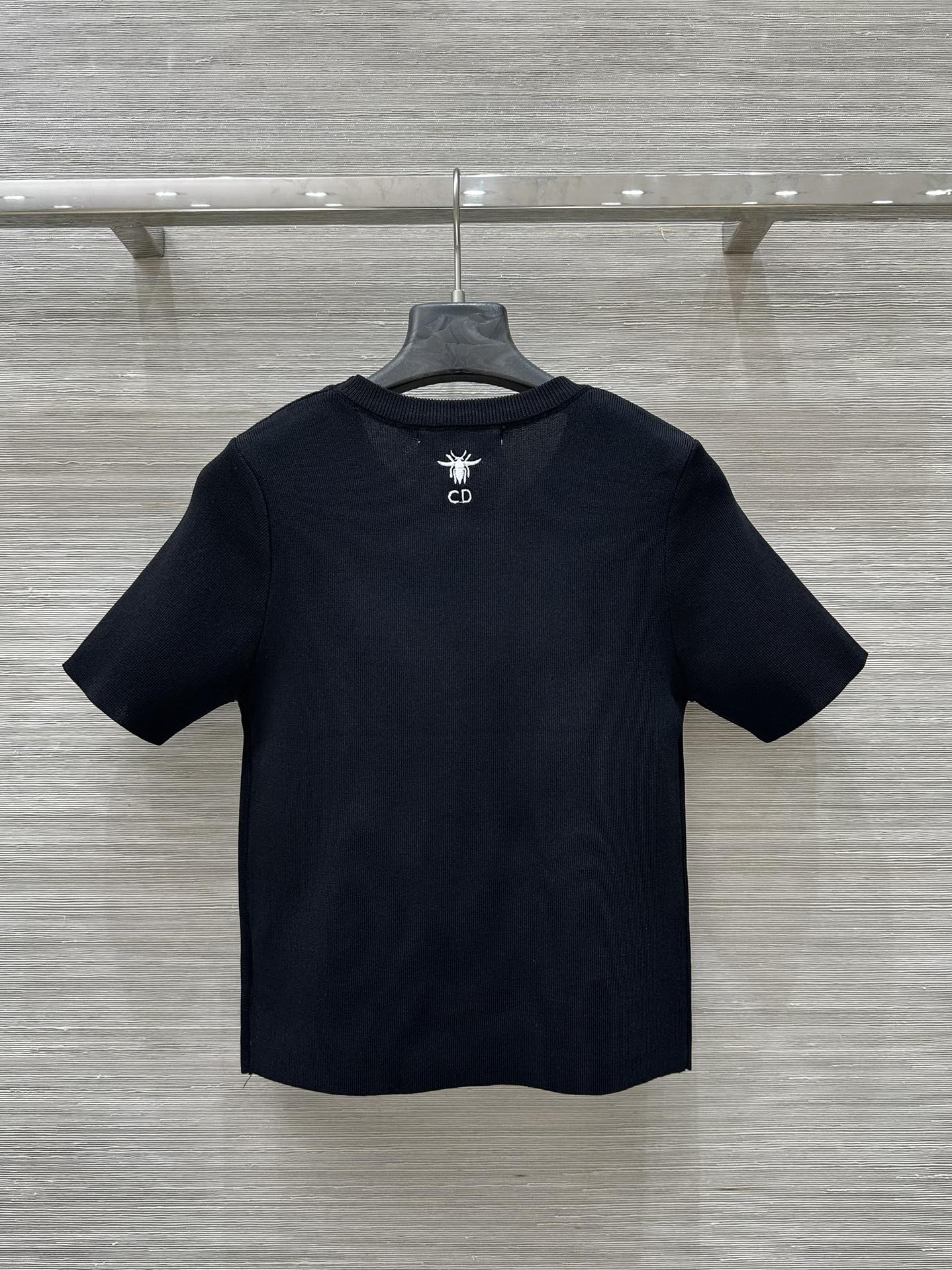 CD 25 Star Embroidery Knitted Short-sleeved Top Black Tencel Wool