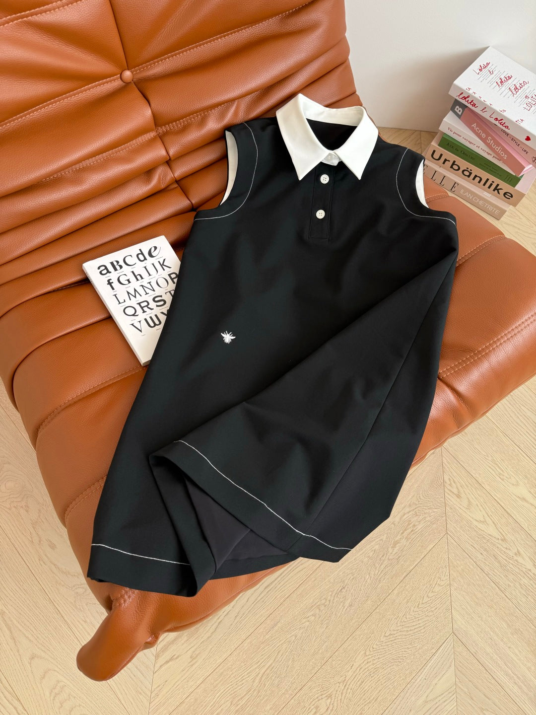 CD 25 Vest Dress Black mix White Cotton
