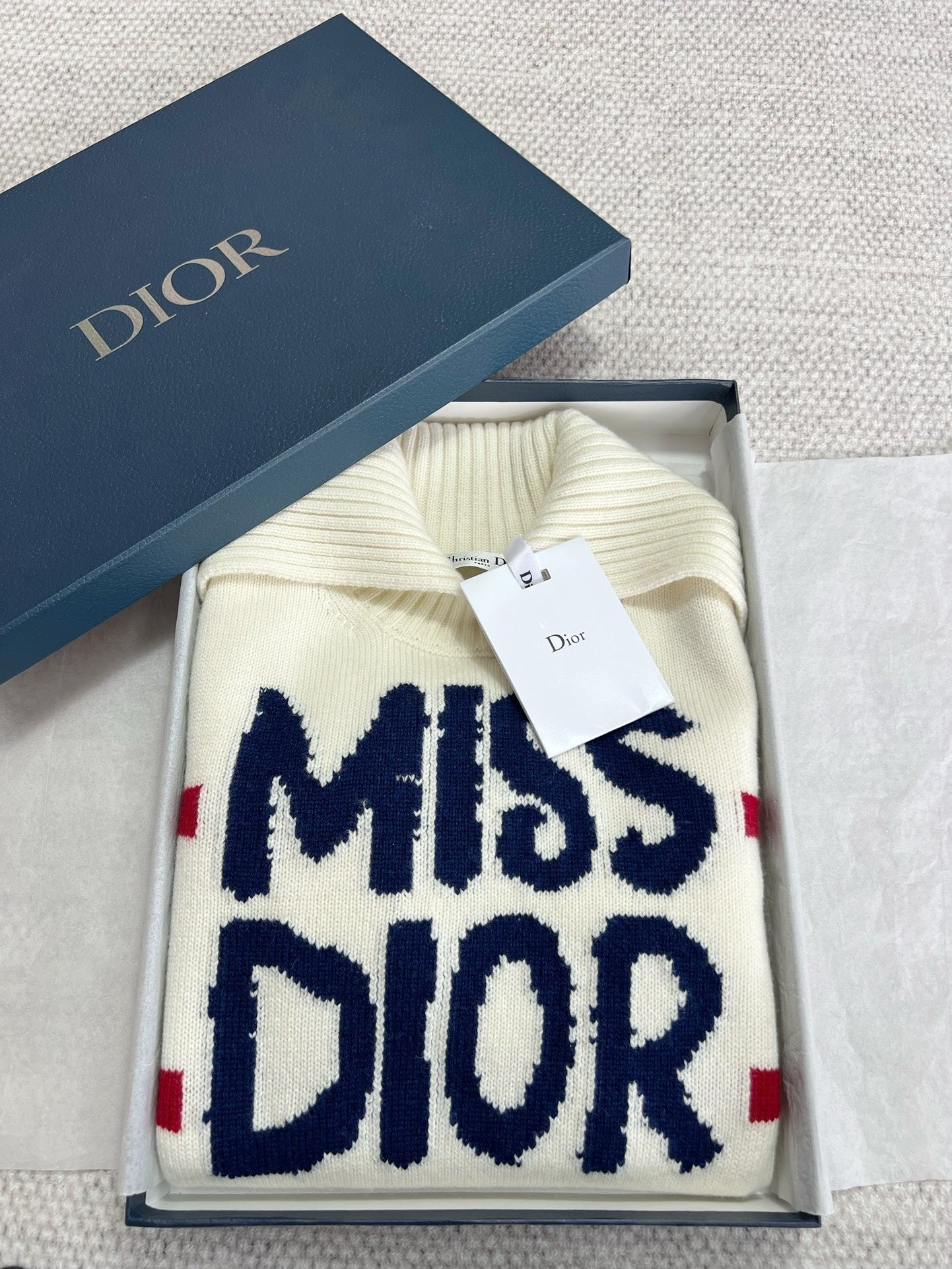 CD Turtleneck Sweater White Blue Red Wool Cashmere