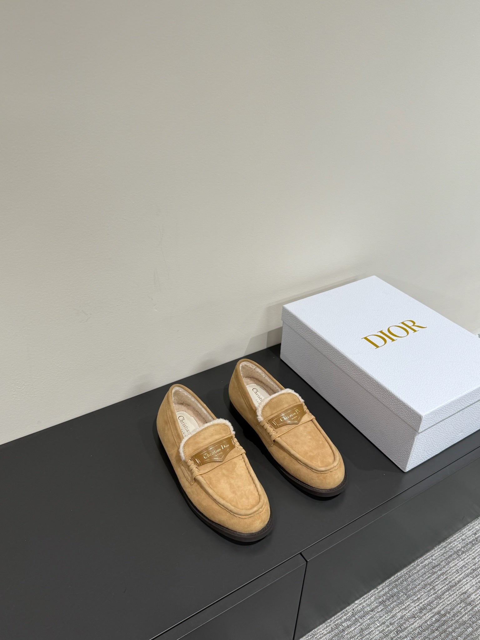 CD Loafers In Beige Brown Suede And Fleece Lining 109295