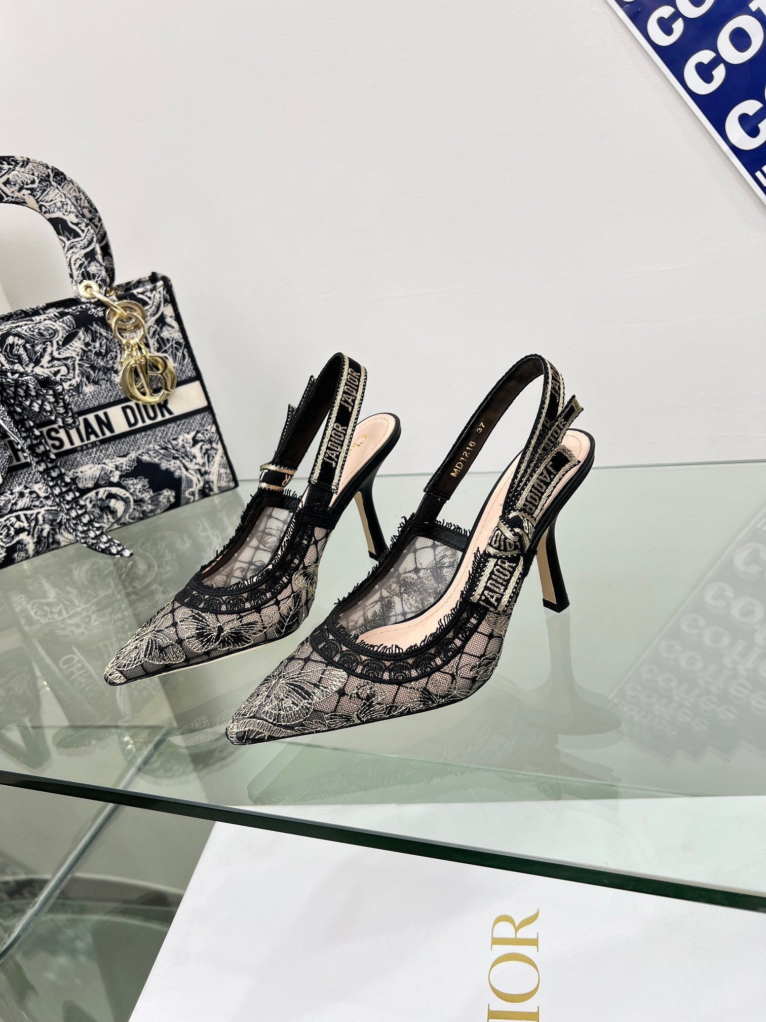 J'Adior Slingback Pump 95mm In Black Lace Fabric 100837