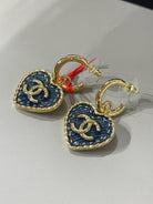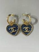 cc heart blue denim light gold hoop earrings