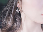 DOUBLE BUTTERFLY SILHOUETTE SILVER DIAMOND EARRINGS