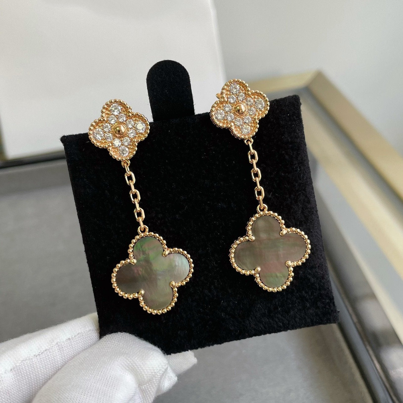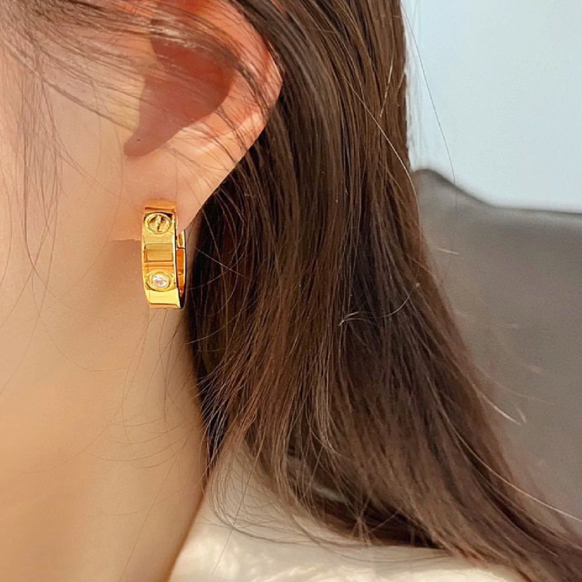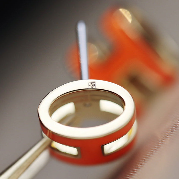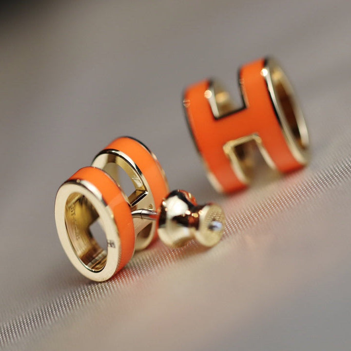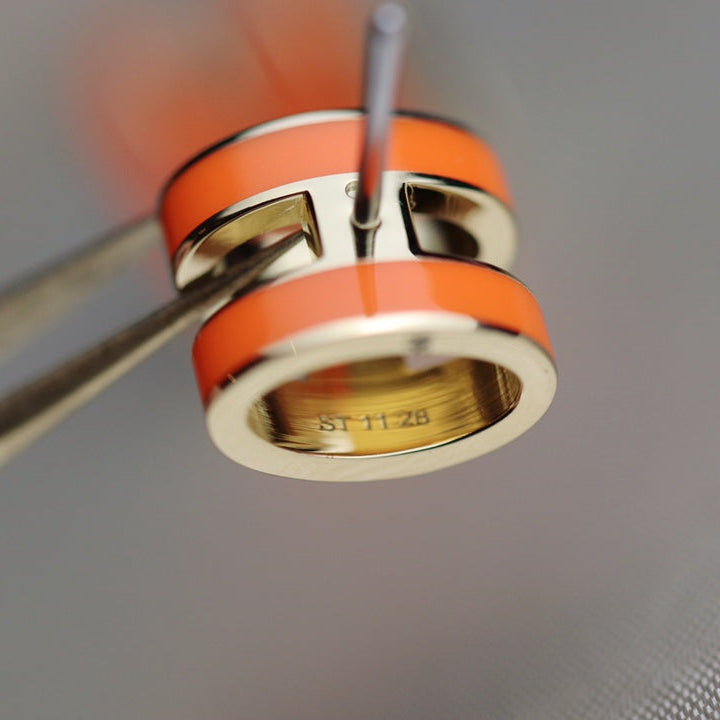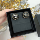 DOUBLE C BLACK ENAMEL STUD EARRINGS