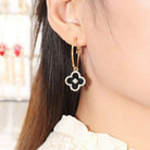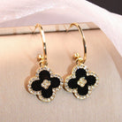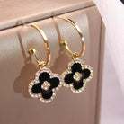 CLOVER ONYX DIAMOND PINK GOLD HOOP EARRINGS