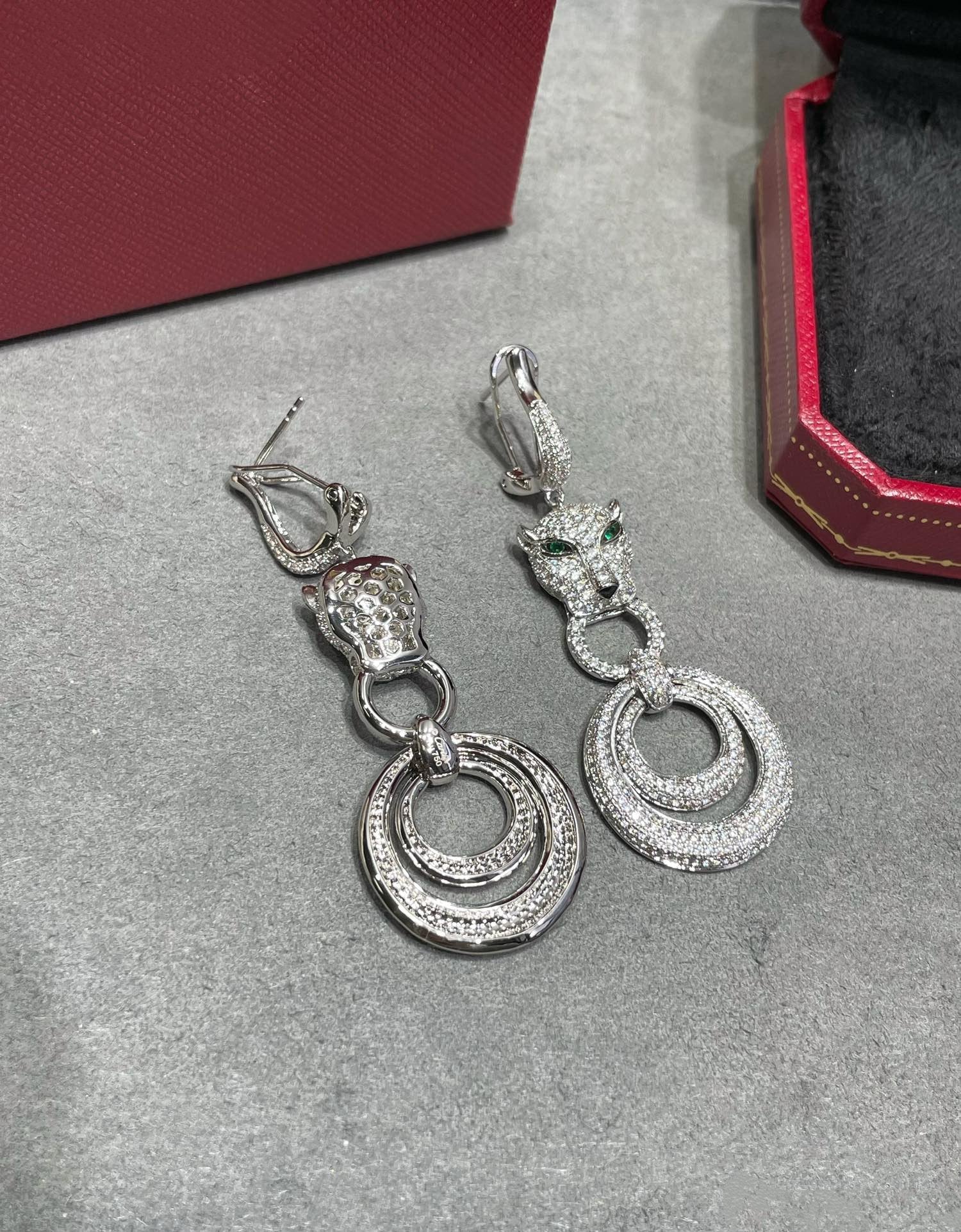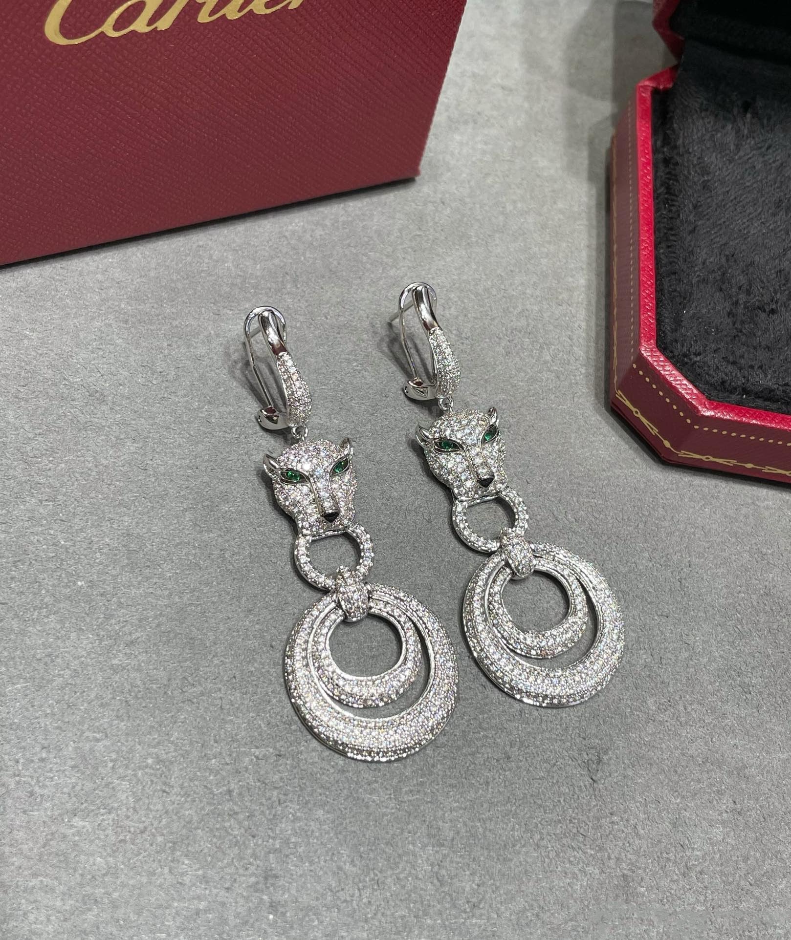 PANTHERE DE CARTI SILVER DIAMOND DROP EARRINGS