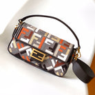 Fend Baguette Brown and Multicolour Canvas Bag 27 with FF Embroidery Ghw