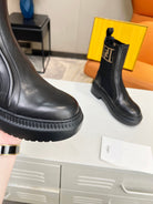 FENDI ROCKOKO BIKER BOOTS IN BLACK CALFSKIN WITH STRETCH FABRIC