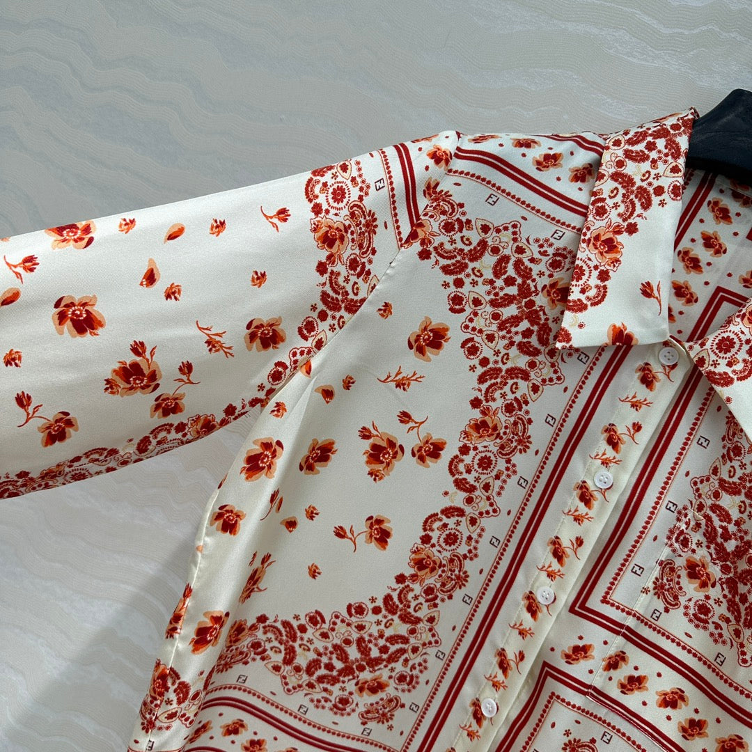Fendi Flower Shirt Red Silk