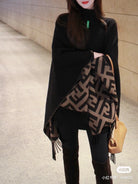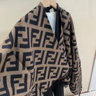 FF 170 CM SCARF IN CAMEL BROWN MIX BLACK CASHMERE AND WOOL