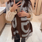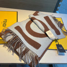 FF 185 CM SCARF IN CAMEL BROWN MIX GREY CASHMERE AND WOOL