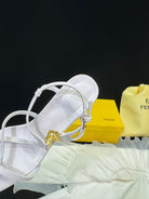 FENDI FFOLD MEDIUM-HEELED 55 MM SANDALS IN WHITE LAMBSKIN WITH GOLD HARDWARE