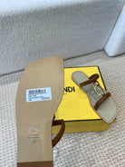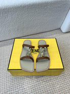FENDI O'LOCK SLIDES BROWN CALFSKIN WITH GOLD HARDWARE