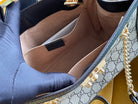 GG PADLOCK MEDIUM 26 SHOULDER BAG BEIGE CANVAS AND BLACK CALFSKIN